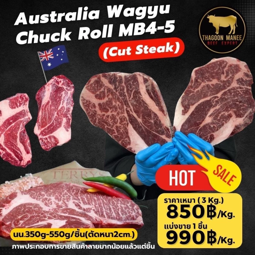 Australia Wagyu Chuck Roll เสต็คราคาประหยัด รสสัมผัสตามแบบฉบับเนื้อวากิว