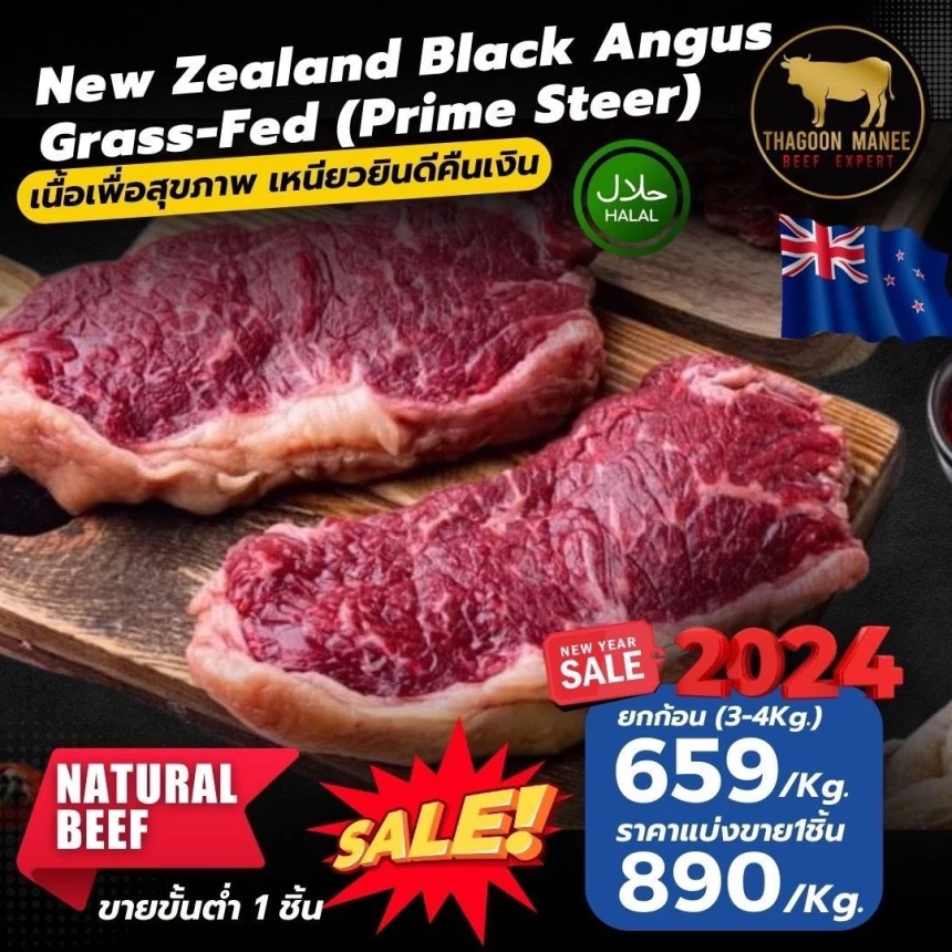 เนื้อตัวนี้คือ New Zealand Grass-Fed Striploin (เกรดps)